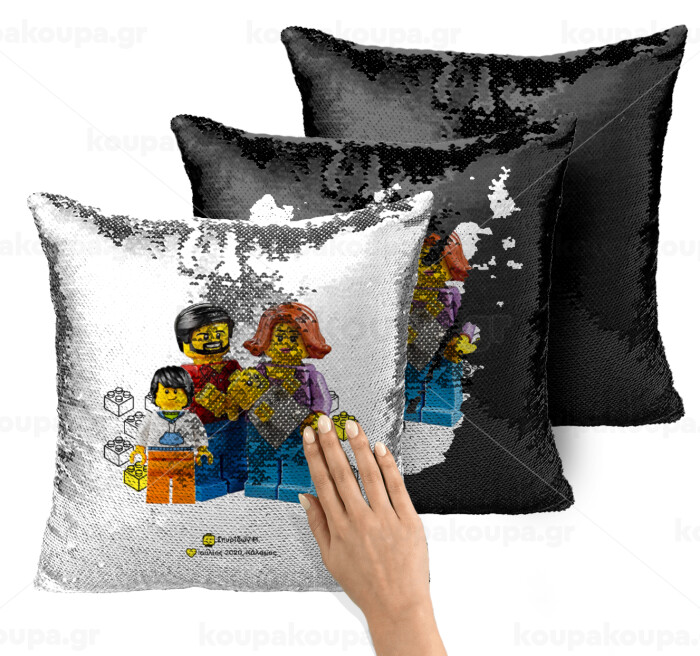 Τύπου Lego family, Μαξιλάρι καναπέ Μαγικό Μαύρο με πούλιες 40x40cm περιέχεται το γέμισμα