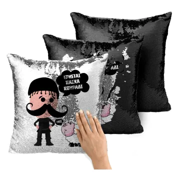 Κρητικός "Έρχεται Πάσχα κουράδι", Μαξιλάρι καναπέ Μαγικό Μαύρο με πούλιες 40x40cm περιέχεται το γέμισμα