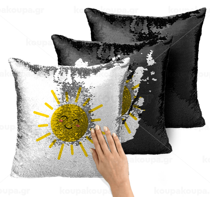 Happy sun, Μαξιλάρι καναπέ Μαγικό Μαύρο με πούλιες 40x40cm περιέχεται το γέμισμα