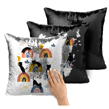 Γατούλες, Μαξιλάρι καναπέ Μαγικό Μαύρο με πούλιες 40x40cm περιέχεται το γέμισμα