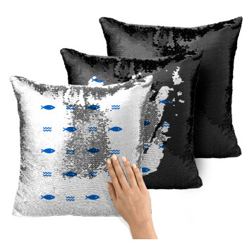 Fishing, Μαξιλάρι καναπέ Μαγικό Μαύρο με πούλιες 40x40cm περιέχεται το γέμισμα