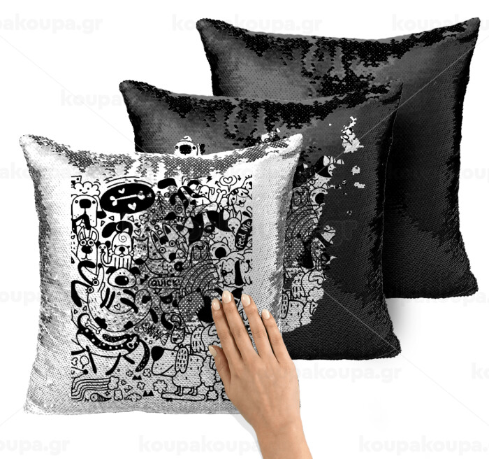 DOG pattern, Μαξιλάρι καναπέ Μαγικό Μαύρο με πούλιες 40x40cm περιέχεται το γέμισμα