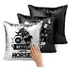 Life is Better with a Horses, Μαξιλάρι καναπέ Μαγικό Μαύρο με πούλιες 40x40cm περιέχεται το γέμισμα