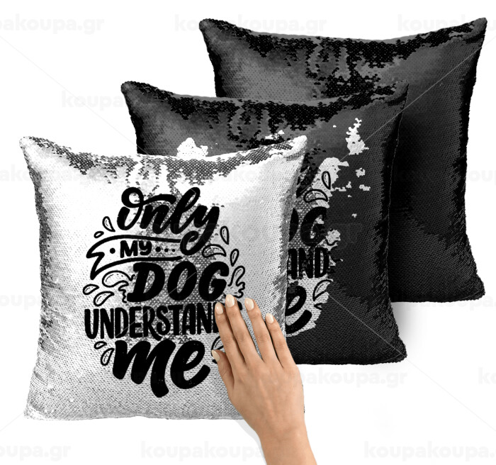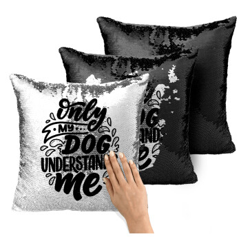 Only my DOG, understands me, Μαξιλάρι καναπέ Μαγικό Μαύρο με πούλιες 40x40cm περιέχεται το γέμισμα