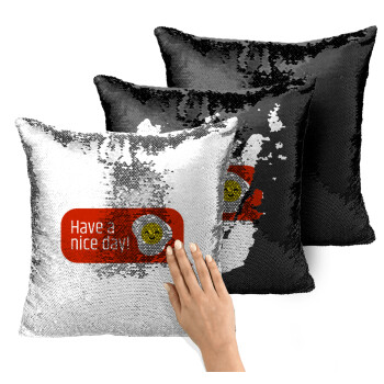 Have a nice day Emoji, Μαξιλάρι καναπέ Μαγικό Μαύρο με πούλιες 40x40cm περιέχεται το γέμισμα
