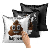 Shit Happens, Μαξιλάρι καναπέ Μαγικό Μαύρο με πούλιες 40x40cm περιέχεται το γέμισμα