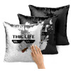 thug life, Μαξιλάρι καναπέ Μαγικό Μαύρο με πούλιες 40x40cm περιέχεται το γέμισμα