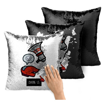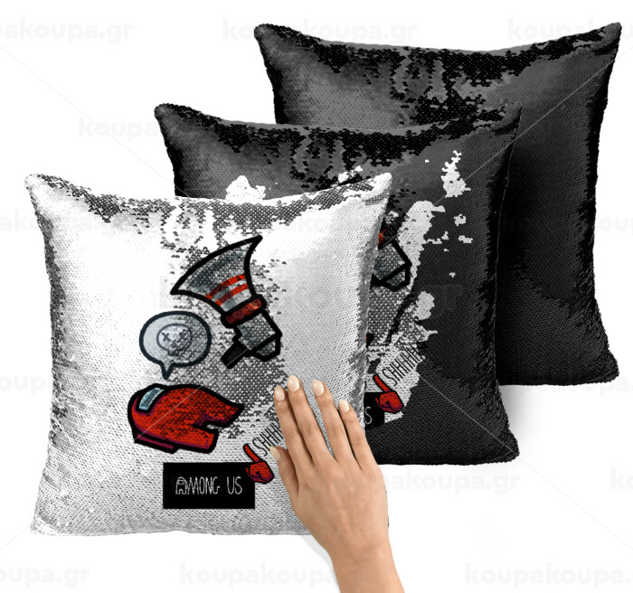 Among US Shhhh!!!, Μαξιλάρι καναπέ Μαγικό Μαύρο με πούλιες 40x40cm περιέχεται το γέμισμα