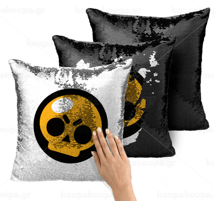 Brawl Stars Skull, Μαξιλάρι καναπέ Μαγικό Μαύρο με πούλιες 40x40cm περιέχεται το γέμισμα