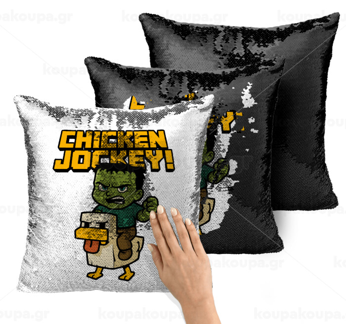 Chicken Jockey, Μαξιλάρι καναπέ Μαγικό Μαύρο με πούλιες 40x40cm περιέχεται το γέμισμα