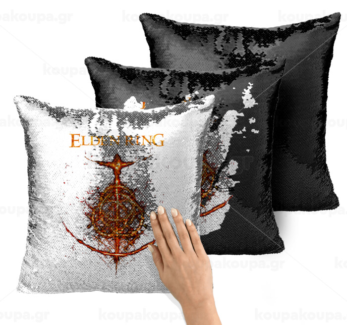 Elden Ring, Μαξιλάρι καναπέ Μαγικό Μαύρο με πούλιες 40x40cm περιέχεται το γέμισμα