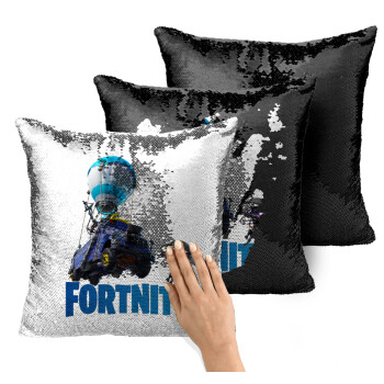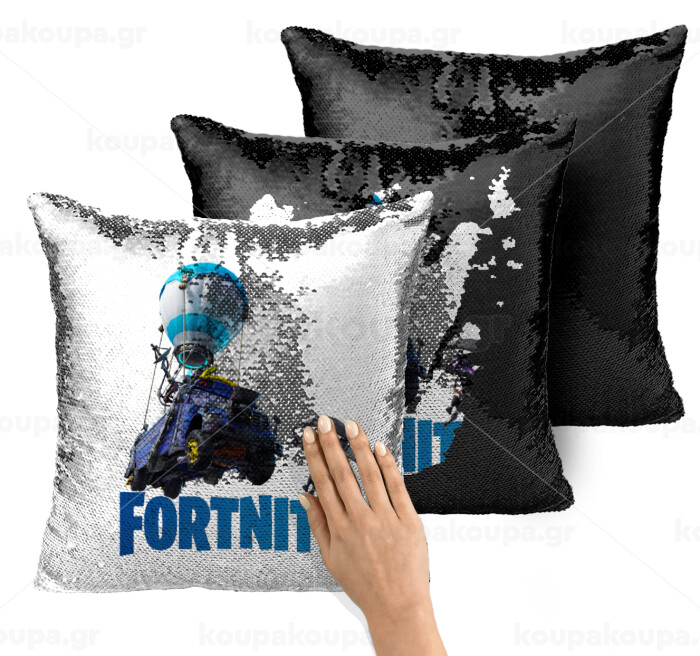 Fortnite Bus, Μαξιλάρι καναπέ Μαγικό Μαύρο με πούλιες 40x40cm περιέχεται το γέμισμα