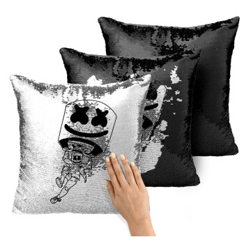 Fortnite Marshmello, Μαξιλάρι καναπέ Μαγικό Μαύρο με πούλιες 40x40cm περιέχεται το γέμισμα