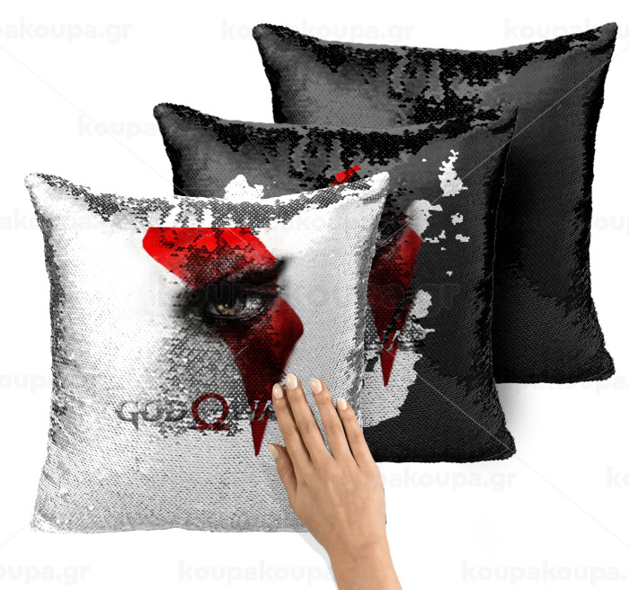 God of war Stratos, Μαξιλάρι καναπέ Μαγικό Μαύρο με πούλιες 40x40cm περιέχεται το γέμισμα