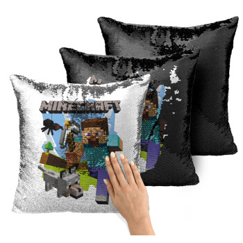 Minecraft Alex, Μαξιλάρι καναπέ Μαγικό Μαύρο με πούλιες 40x40cm περιέχεται το γέμισμα