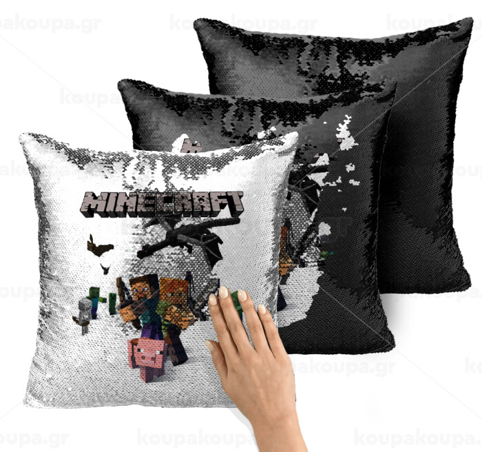 Minecraft Alex, Μαξιλάρι καναπέ Μαγικό Μαύρο με πούλιες 40x40cm περιέχεται το γέμισμα