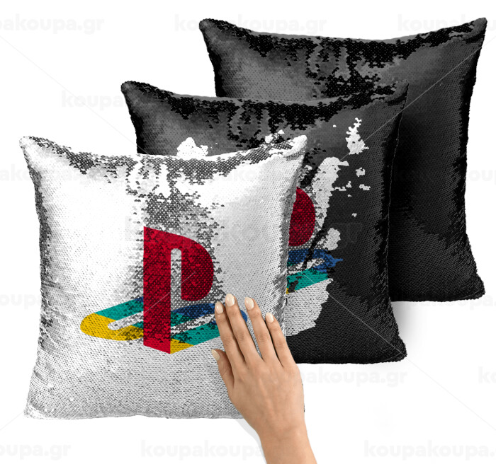 Playstation, Μαξιλάρι καναπέ Μαγικό Μαύρο με πούλιες 40x40cm περιέχεται το γέμισμα