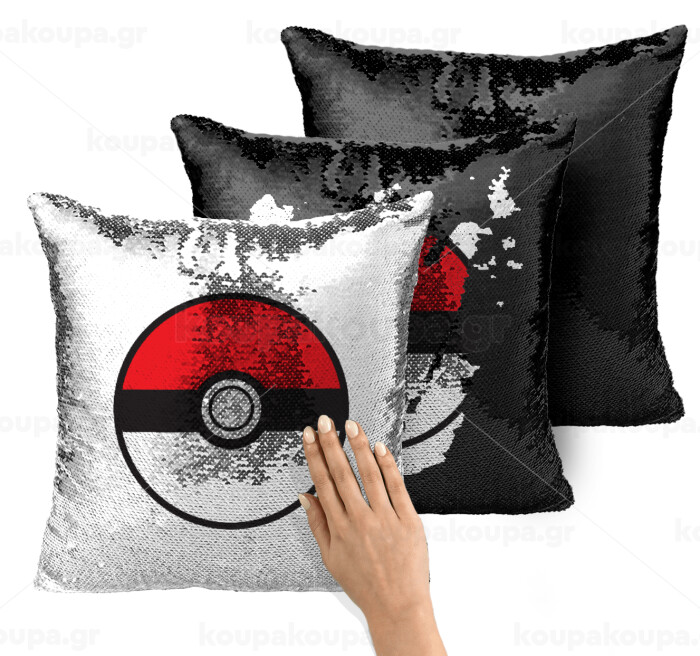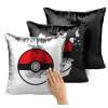 Pokemon ball, Μαξιλάρι καναπέ Μαγικό Μαύρο με πούλιες 40x40cm περιέχεται το γέμισμα