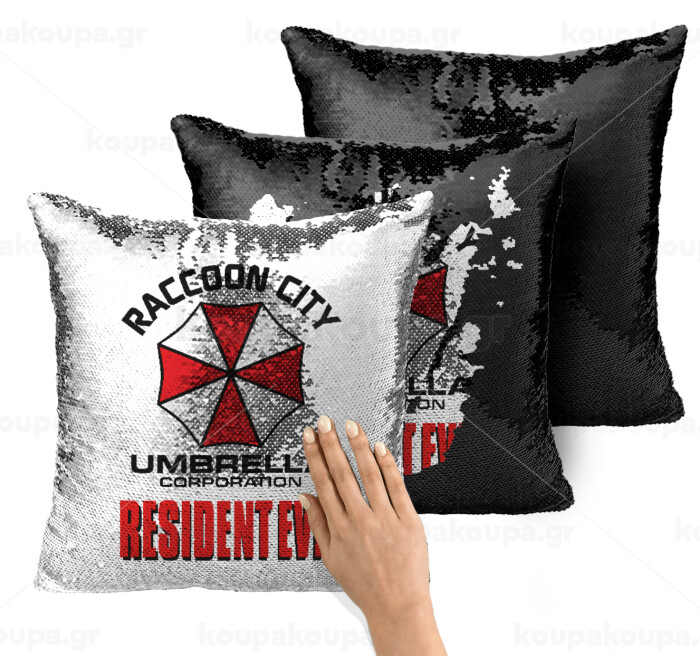 Resident Evil, Μαξιλάρι καναπέ Μαγικό Μαύρο με πούλιες 40x40cm περιέχεται το γέμισμα