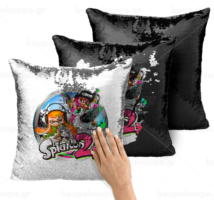 Splatoon 2, Μαξιλάρι καναπέ Μαγικό Μαύρο με πούλιες 40x40cm περιέχεται το γέμισμα
