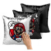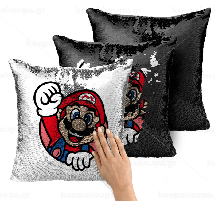 Super mario win, Μαξιλάρι καναπέ Μαγικό Μαύρο με πούλιες 40x40cm περιέχεται το γέμισμα