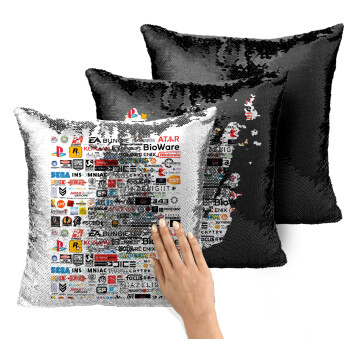 Video Game Studio Logos, Μαξιλάρι καναπέ Μαγικό Μαύρο με πούλιες 40x40cm περιέχεται το γέμισμα