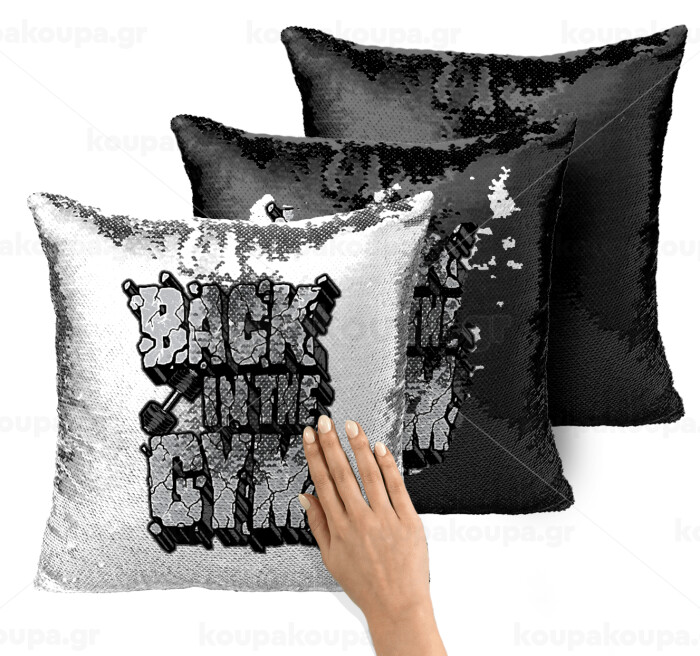 Back in the GYM, Μαξιλάρι καναπέ Μαγικό Μαύρο με πούλιες 40x40cm περιέχεται το γέμισμα