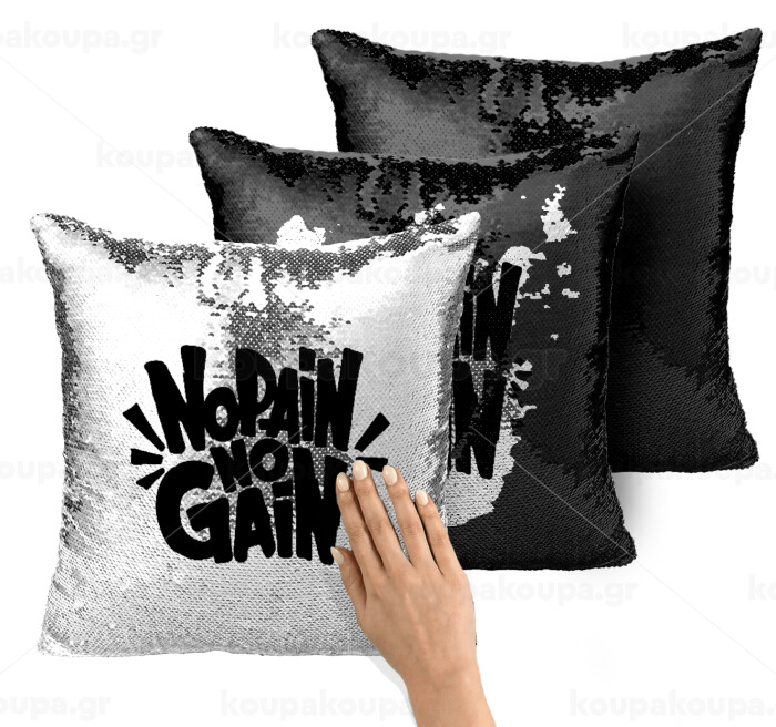 No pain no gain, Μαξιλάρι καναπέ Μαγικό Μαύρο με πούλιες 40x40cm περιέχεται το γέμισμα