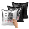 Single, Taken, Who cares i'm amazing, Μαξιλάρι καναπέ Μαγικό Μαύρο με πούλιες 40x40cm περιέχεται το γέμισμα