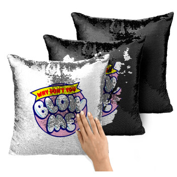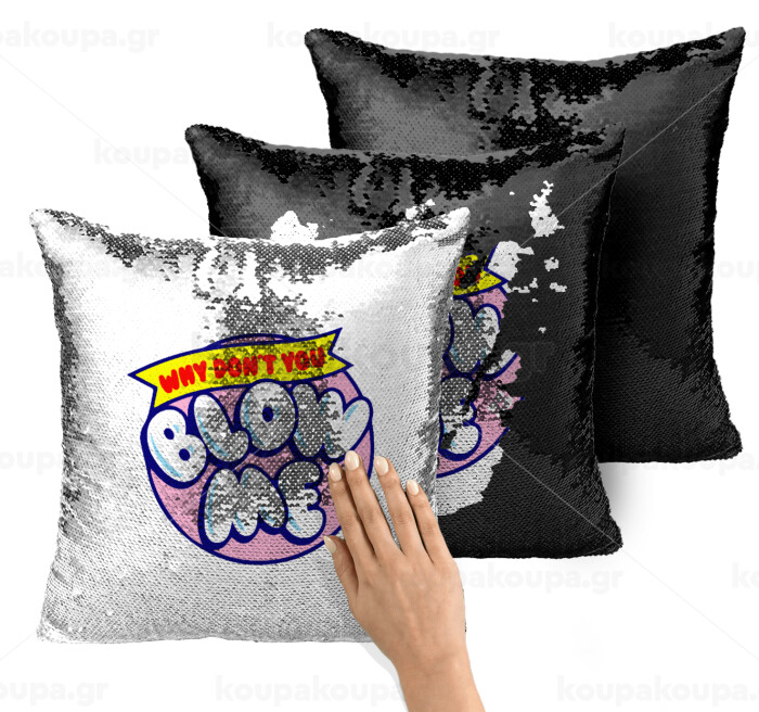 Why Don't You Blow Me Funny, Μαξιλάρι καναπέ Μαγικό Μαύρο με πούλιες 40x40cm περιέχεται το γέμισμα