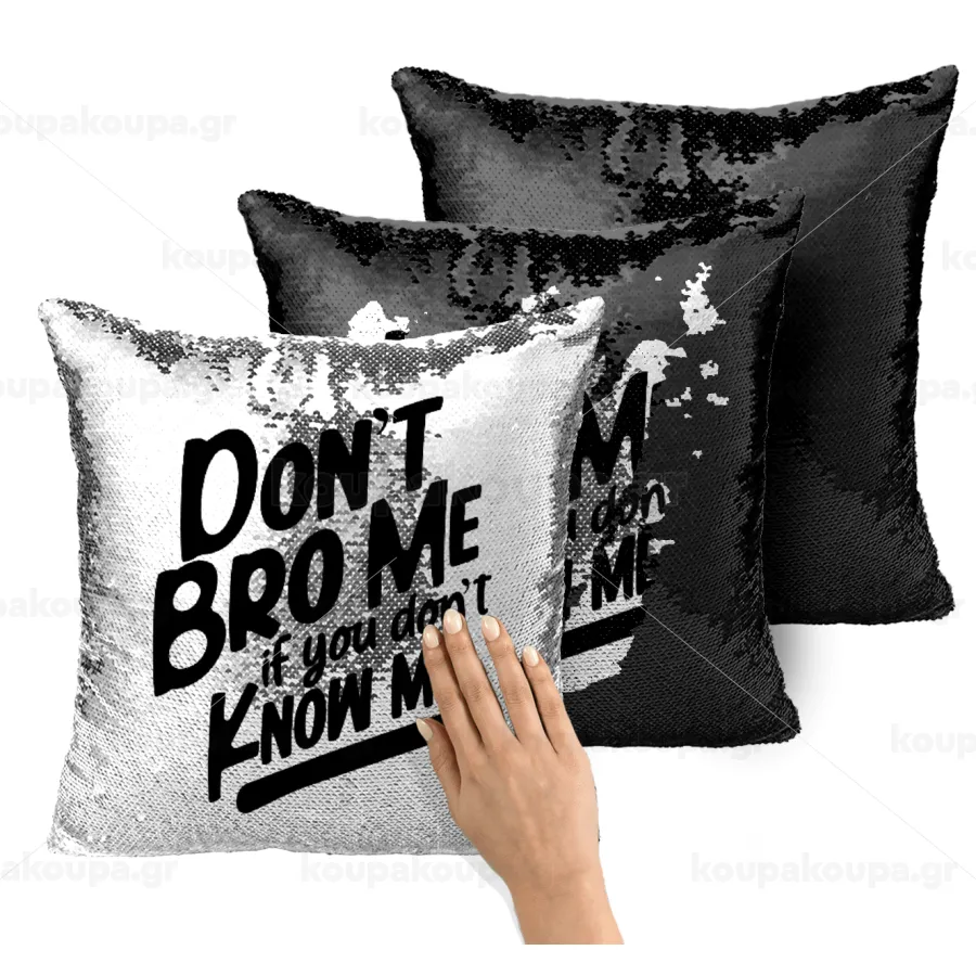 Dont't bro me, if you don't know me., Μαξιλάρι καναπέ Μαγικό Μαύρο με πούλιες 40x40cm περιέχεται το γέμισμα