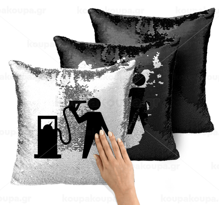 Fuel crisis, Μαξιλάρι καναπέ Μαγικό Μαύρο με πούλιες 40x40cm περιέχεται το γέμισμα