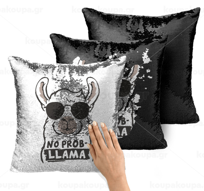 No Prob Llama, Μαξιλάρι καναπέ Μαγικό Μαύρο με πούλιες 40x40cm περιέχεται το γέμισμα