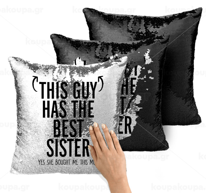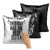 This guy has the best Sister, Μαξιλάρι καναπέ Μαγικό Μαύρο με πούλιες 40x40cm περιέχεται το γέμισμα