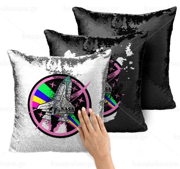 NASA pink, Μαξιλάρι καναπέ Μαγικό Μαύρο με πούλιες 40x40cm περιέχεται το γέμισμα