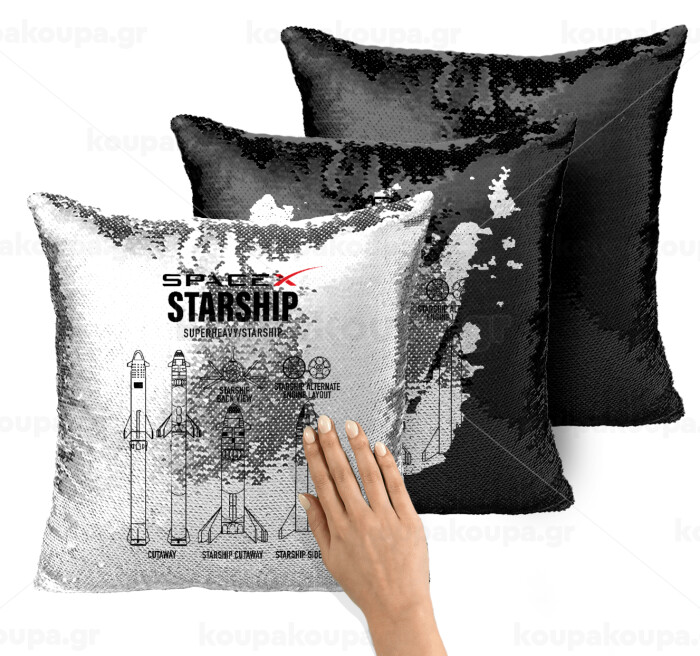 Space X, Μαξιλάρι καναπέ Μαγικό Μαύρο με πούλιες 40x40cm περιέχεται το γέμισμα