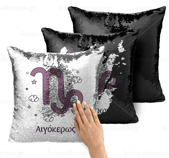 Ζώδια Αιγόκερως, Μαξιλάρι καναπέ Μαγικό Μαύρο με πούλιες 40x40cm περιέχεται το γέμισμα