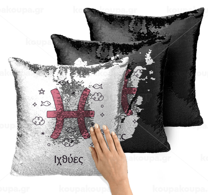 Ζώδια Ιχθύες, Μαξιλάρι καναπέ Μαγικό Μαύρο με πούλιες 40x40cm περιέχεται το γέμισμα