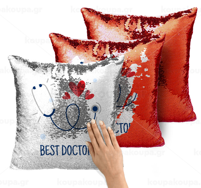 Best Doctor, Μαξιλάρι καναπέ Μαγικό Κόκκινο με πούλιες 40x40cm περιέχεται το γέμισμα
