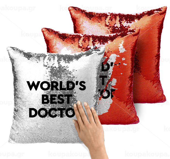World's Best Doctor, Μαξιλάρι καναπέ Μαγικό Κόκκινο με πούλιες 40x40cm περιέχεται το γέμισμα