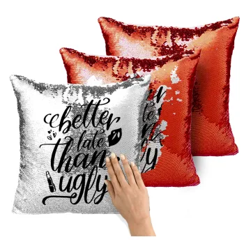 Better late than ugly, Μαξιλάρι καναπέ Μαγικό Κόκκινο με πούλιες 40x40cm περιέχεται το γέμισμα