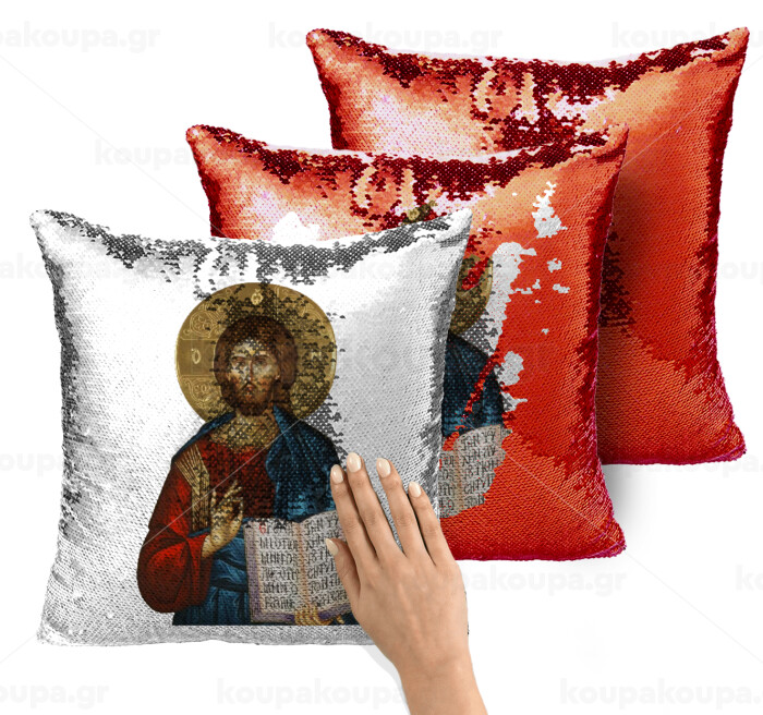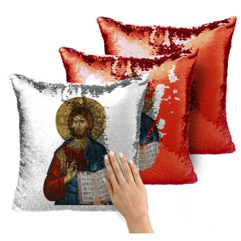 Jesus, Μαξιλάρι καναπέ Μαγικό Κόκκινο με πούλιες 40x40cm περιέχεται το γέμισμα