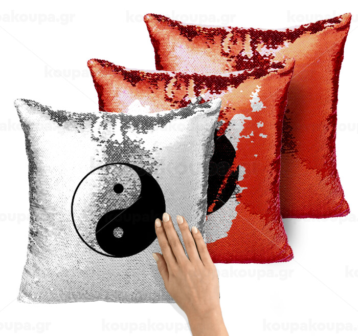 Yin Yang, Μαξιλάρι καναπέ Μαγικό Κόκκινο με πούλιες 40x40cm περιέχεται το γέμισμα