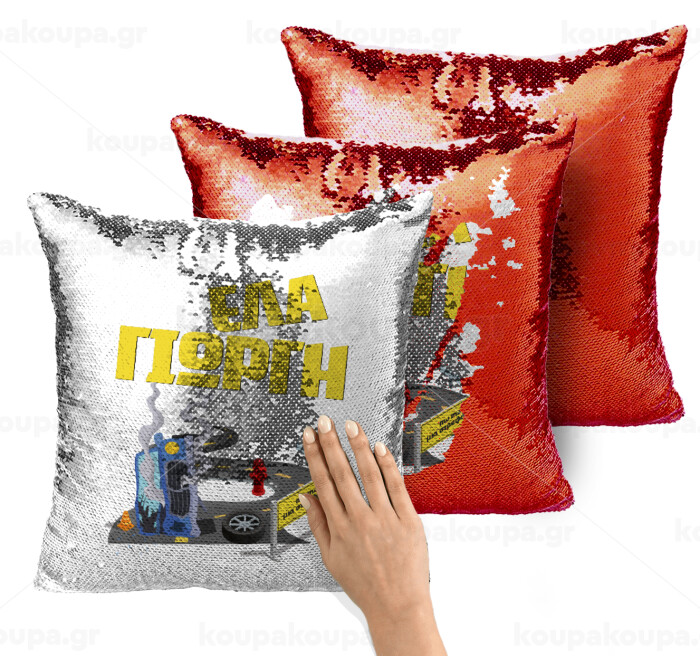 Έλα Γιώργη, πω πω μια στροφάρα, Μαξιλάρι καναπέ Μαγικό Κόκκινο με πούλιες 40x40cm περιέχεται το γέμισμα