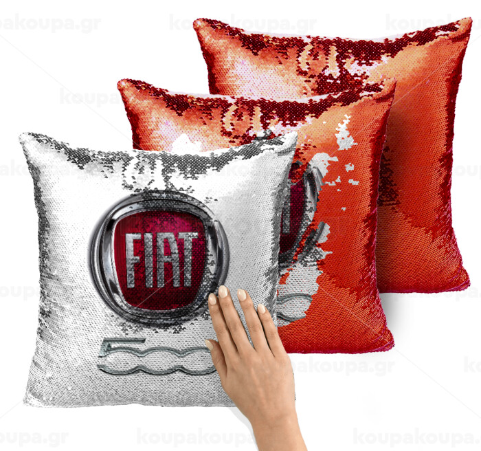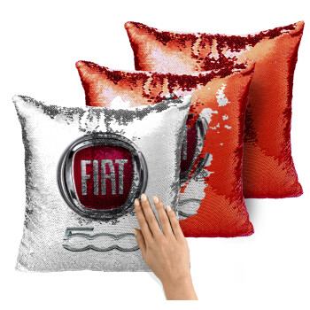 FIAT 500, Μαξιλάρι καναπέ Μαγικό Κόκκινο με πούλιες 40x40cm περιέχεται το γέμισμα