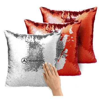 Mercedes small logo, Μαξιλάρι καναπέ Μαγικό Κόκκινο με πούλιες 40x40cm περιέχεται το γέμισμα