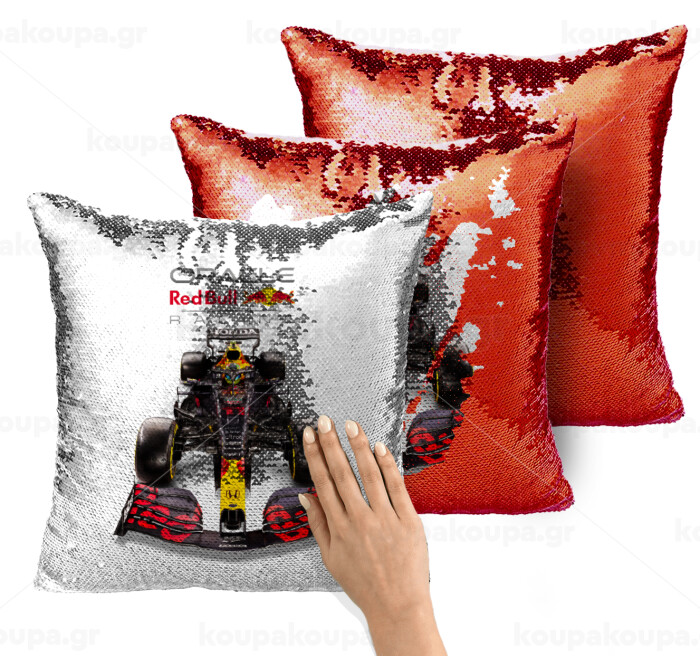 Redbull Racing Team F1, Μαξιλάρι καναπέ Μαγικό Κόκκινο με πούλιες 40x40cm περιέχεται το γέμισμα