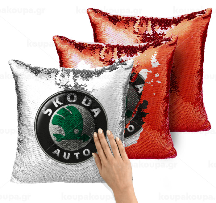 SKODA, Μαξιλάρι καναπέ Μαγικό Κόκκινο με πούλιες 40x40cm περιέχεται το γέμισμα