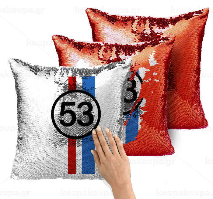 VW Herbie 53, Μαξιλάρι καναπέ Μαγικό Κόκκινο με πούλιες 40x40cm περιέχεται το γέμισμα