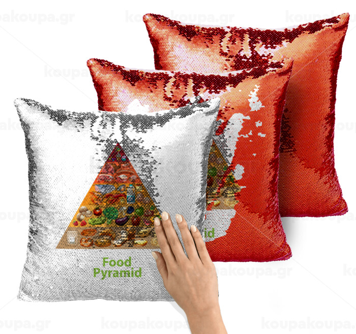 Food pyramid chart, Μαξιλάρι καναπέ Μαγικό Κόκκινο με πούλιες 40x40cm περιέχεται το γέμισμα